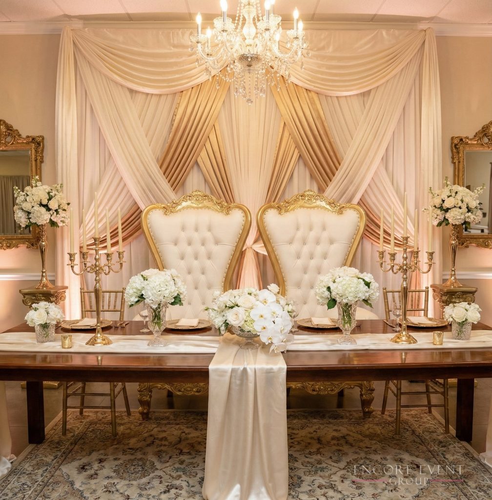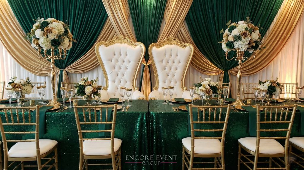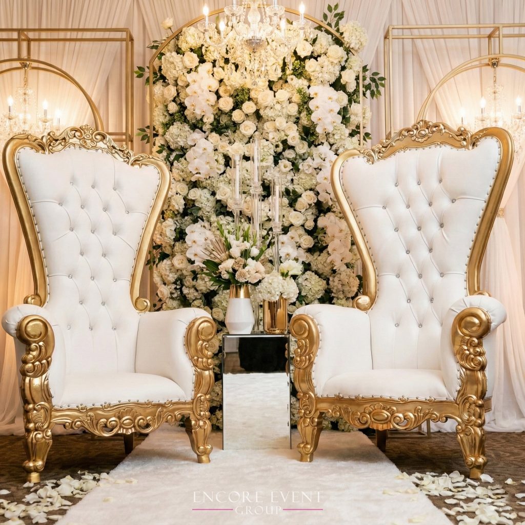 Gold throne chair rental in Jeffersonville event venue