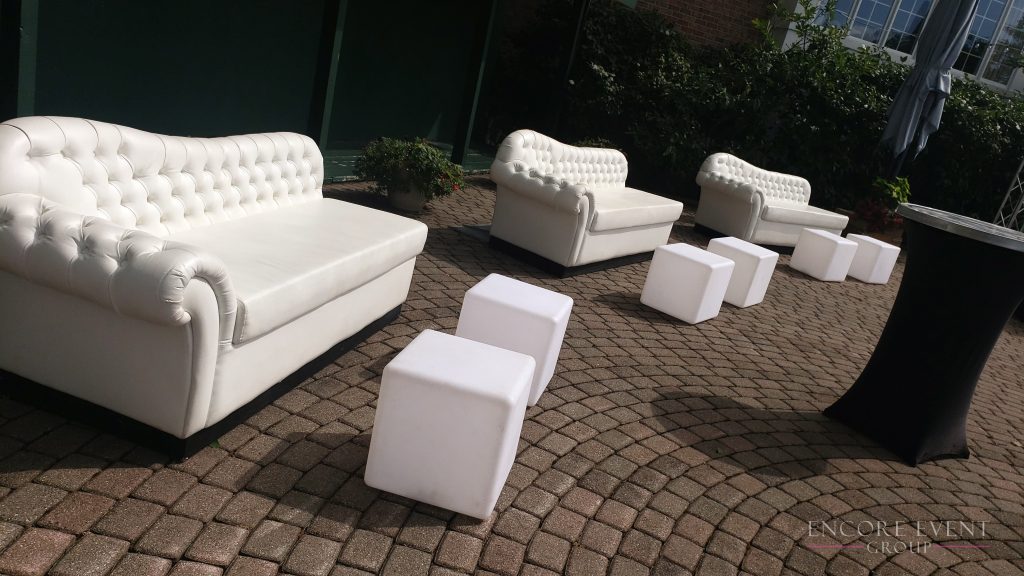Many clients enhance their lounge areas with up-lights and glow cubes. Since the couches are white, they are also ideal for glow parties. We also rent low-cost neon lights to enhance bright colors & make decorations glow.