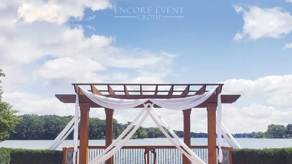 ★★★★★ “Encore was great to deal with, and the outside drapery made the venue look so much nicer!!! It was really windy that day, but the drapery held up on the pergola.” — Gina Szymaniak