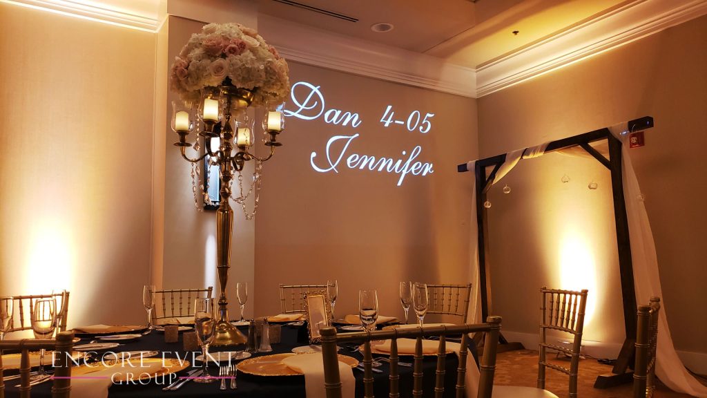 We also provide stunning floral & décor options, including a flower ceremony canopy & Louisville flower ceilings. Pair these with Encore flower garlands and our floral arch to create a cohesive, personalized celebration. Create your wedding style with the perfect uplights and monograms.