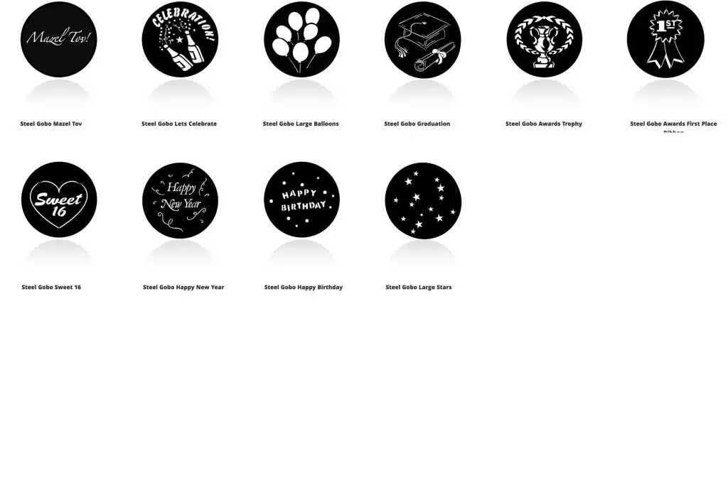 - Celebration Gobo – Bdays, anniversaries, text