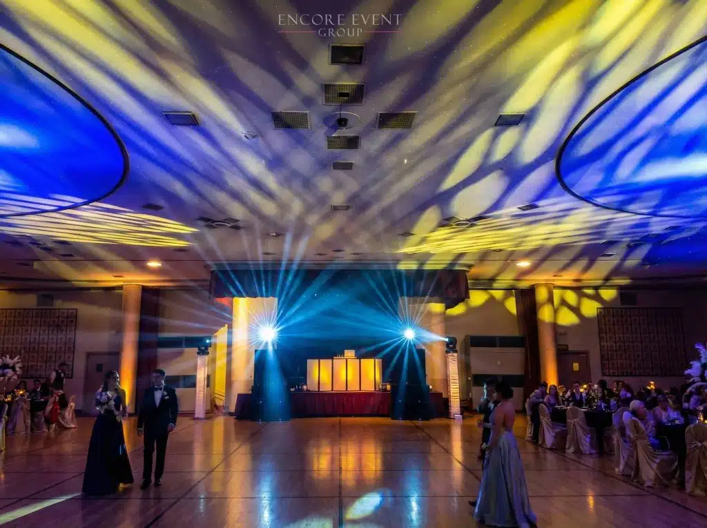 See the City of Lights transform this banquet hall — reserve your custom venue lighting design today!