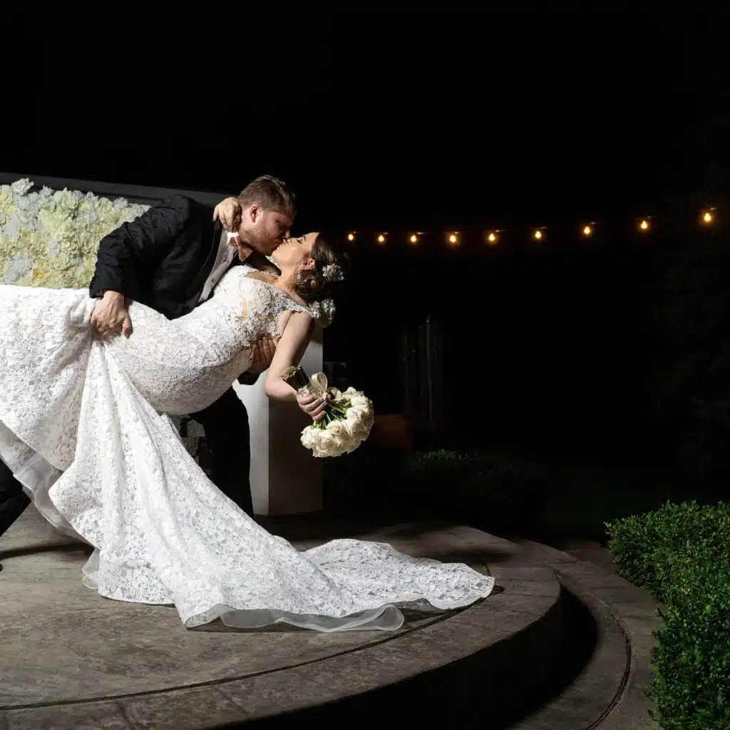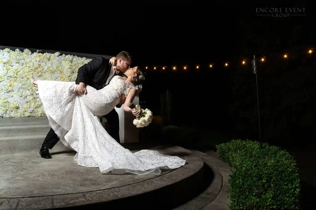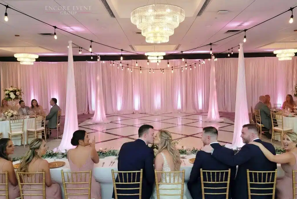 We design Southern Indiana weddings with the best quantity & layout for vintage string lighting. Combine bistro lights with backdrop draping, uplight rentals & a DJ light show to create an Encore wedding atmosphere.