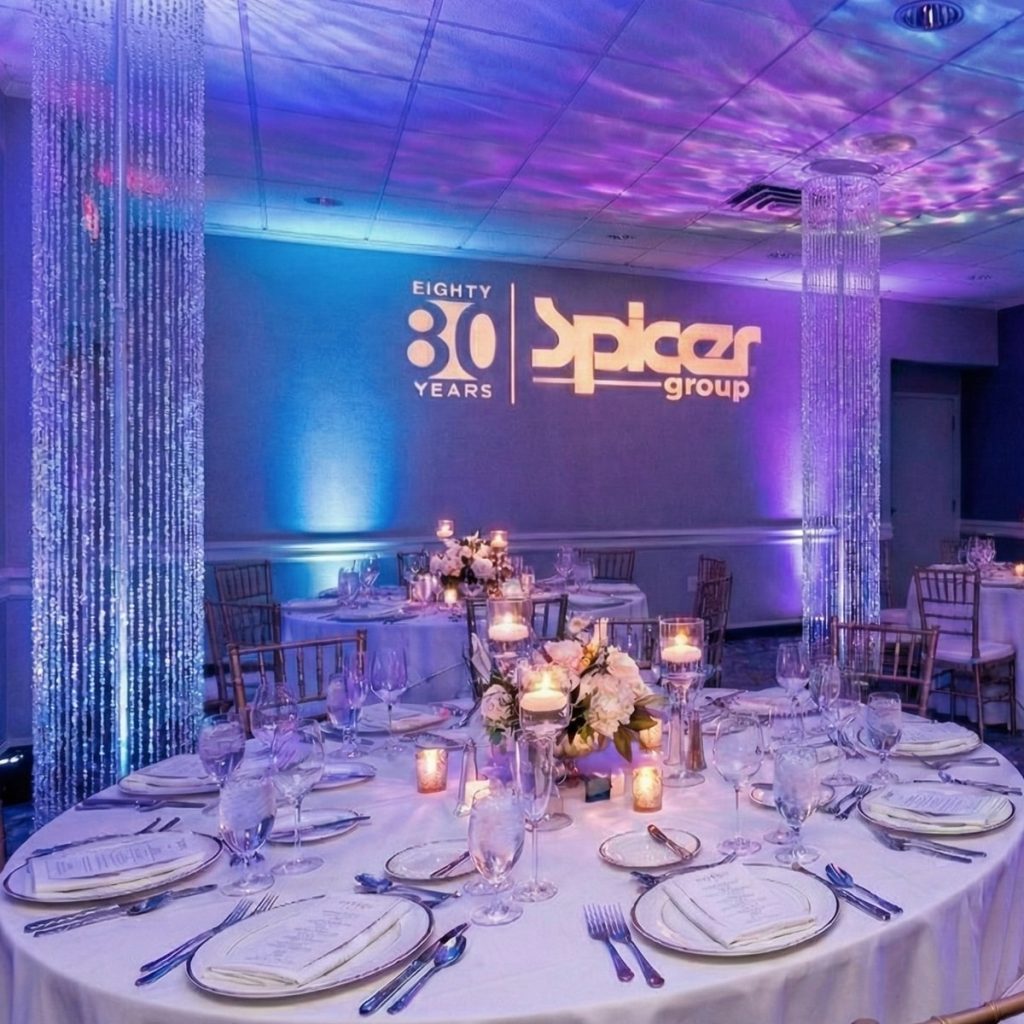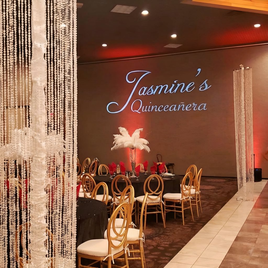 When we set up your name monogram light at your banquet hall, we ensure it’s crisp & placed for the best photos in wedding décor — not hidden under feet or blocked by guests.