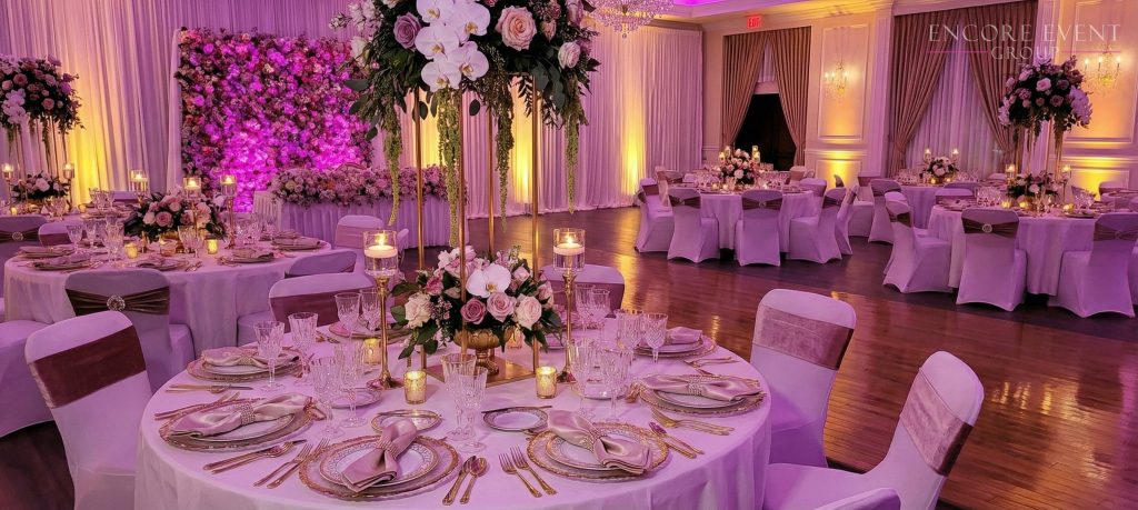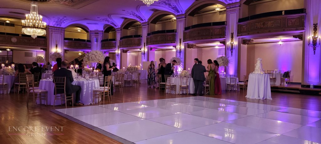 Watch our video above to see wedding uplights in a ballroom. Reserve Encore today & experience the difference.