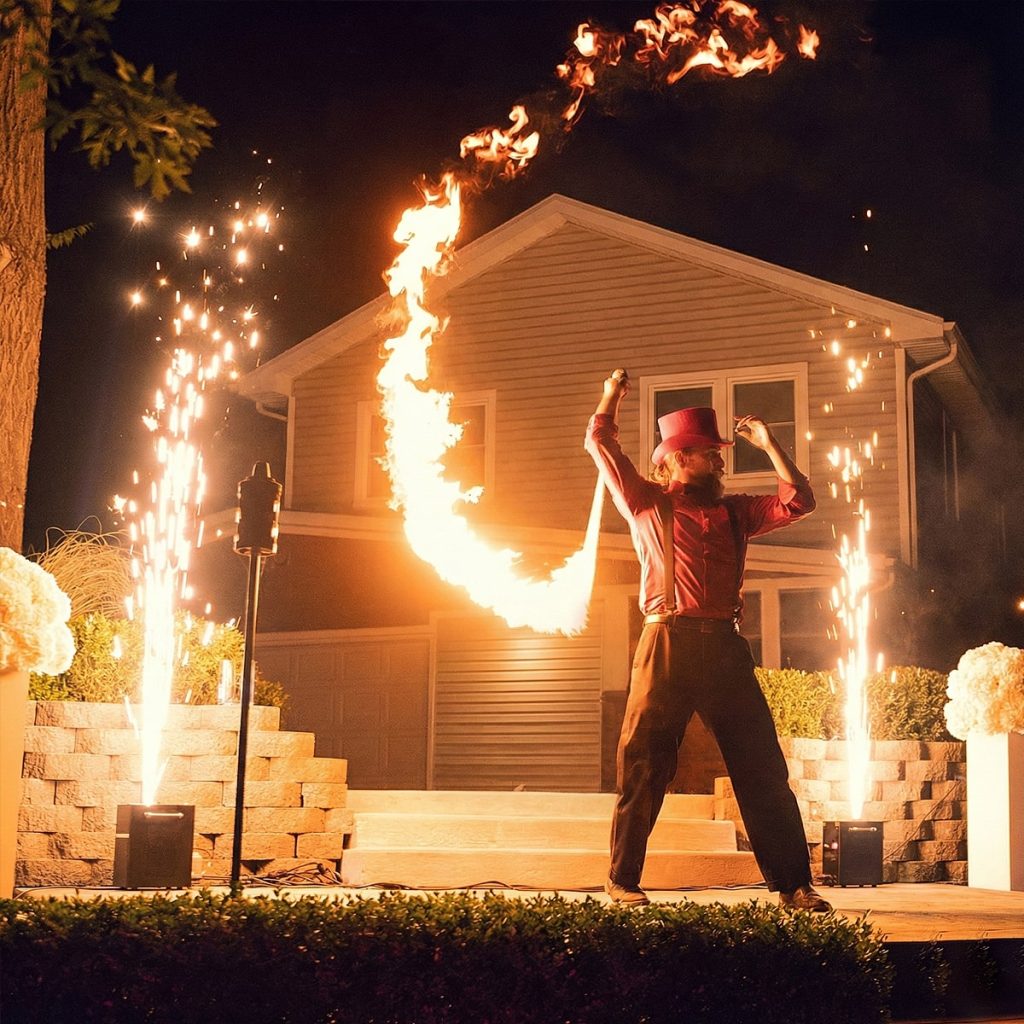 Take your party to new heights with Indoor Firework Services or a Dancing on a Cloud experience. Our Southern Indiana moving lights & Kentuckiana gobo lighting add ambiance.